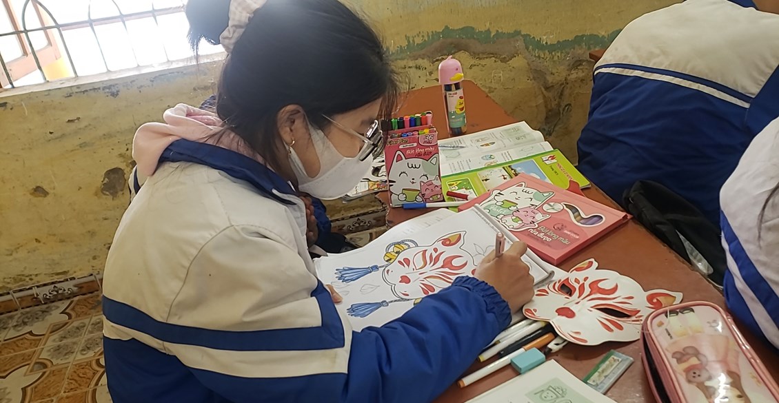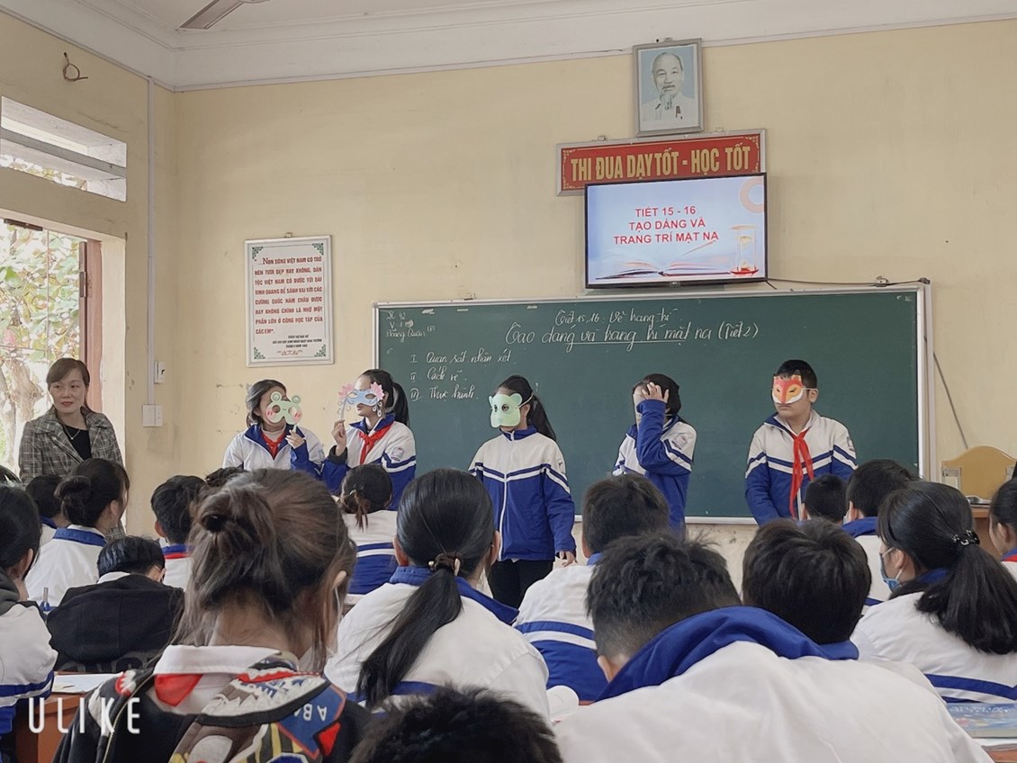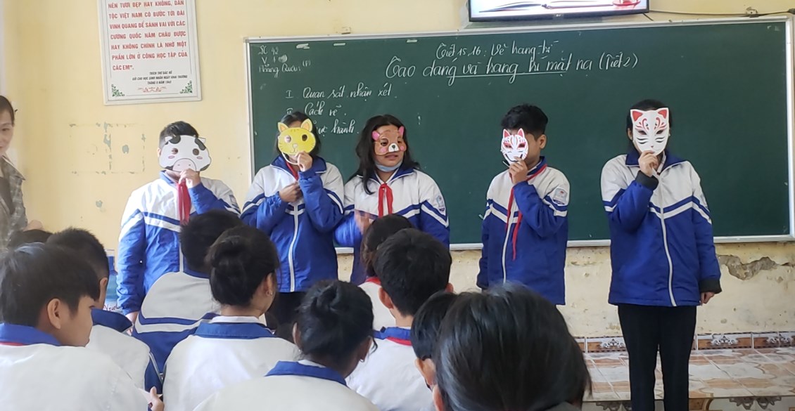 Tiết học Tạo dáng và trang trí mặt nạ diễn ra sôi nổi và lôi cuốn được tất cả các em học sinh tham gia. Tiết học giúp tất cả các em từ những học sinh chưa lần nào hoàn thành được sản phẩm ngay trên lớp đến những em có năng khiếu thực sự đều hào hứng hợp tác với nhau để hoàn thành sản phẩm của nhóm.