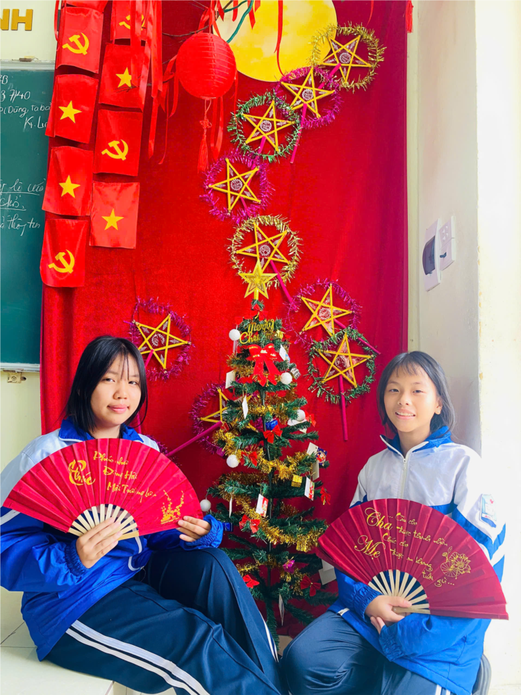 Tháng Mười Hai về mang theo cái se lạnh dịu dàng, và lớp 7B cũng nhanh chóng “bắt sóng” không khí Giáng sinh theo cách rất riêng - rộn ràng, ấm áp và ngập tràn tiếng cười. Chỉ cần bước chân vào lớp, ai cũng có thể cảm nhận ngay một mùa Noel đang ghé thăm thật gần.