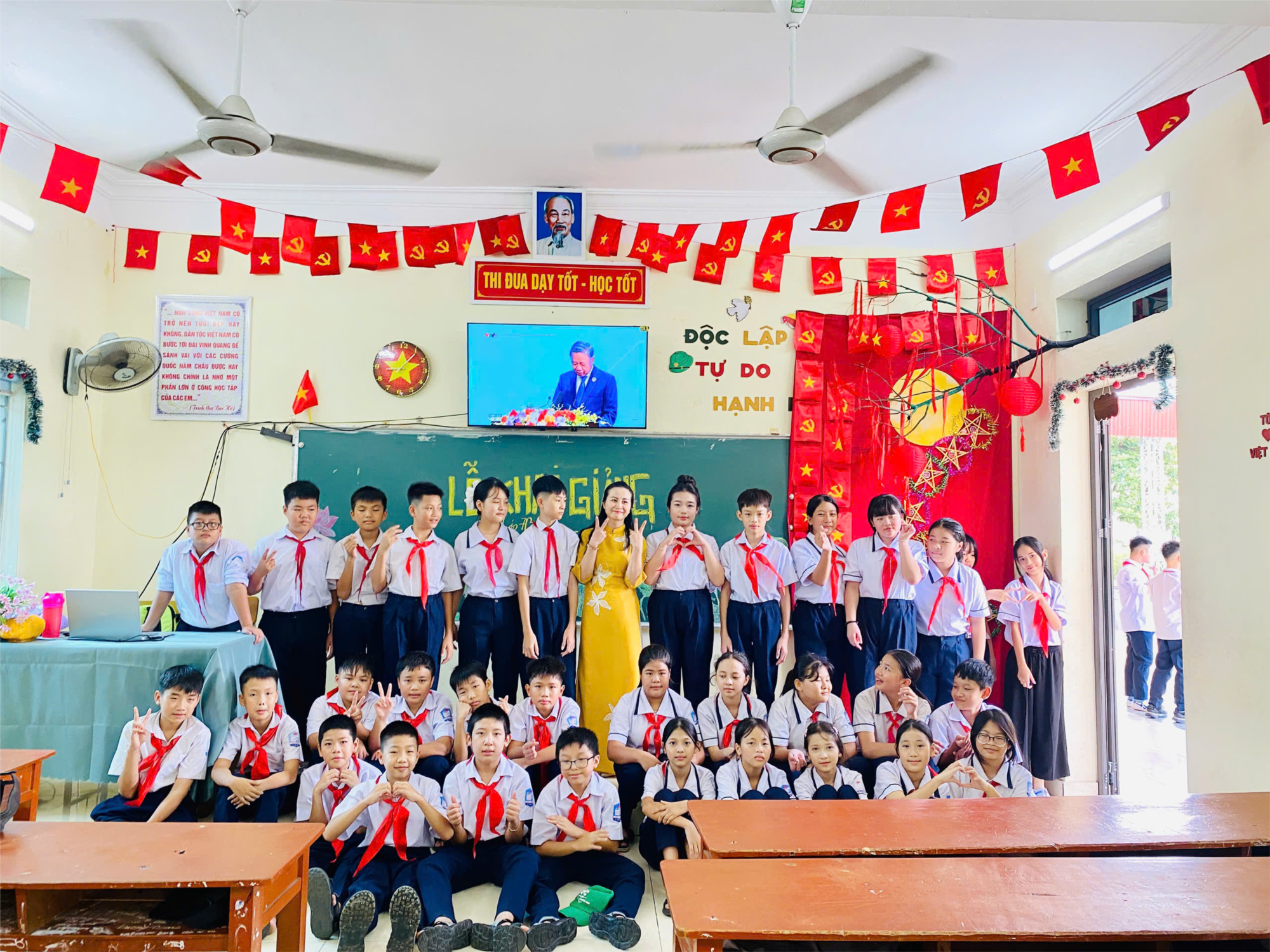 Lá cờ đỏ sao vàng tung bay trong gió thu, hòa trong tiếng quốc ca hào hùng, tạo nên một không khí thiêng liêng và trang trọng đến lạ. Đó không chỉ là ngày khởi đầu cho một năm học, mà còn là dấu mốc của sự trưởng thành, của khát vọng vươn lên và hành trình chinh phục tri thức.